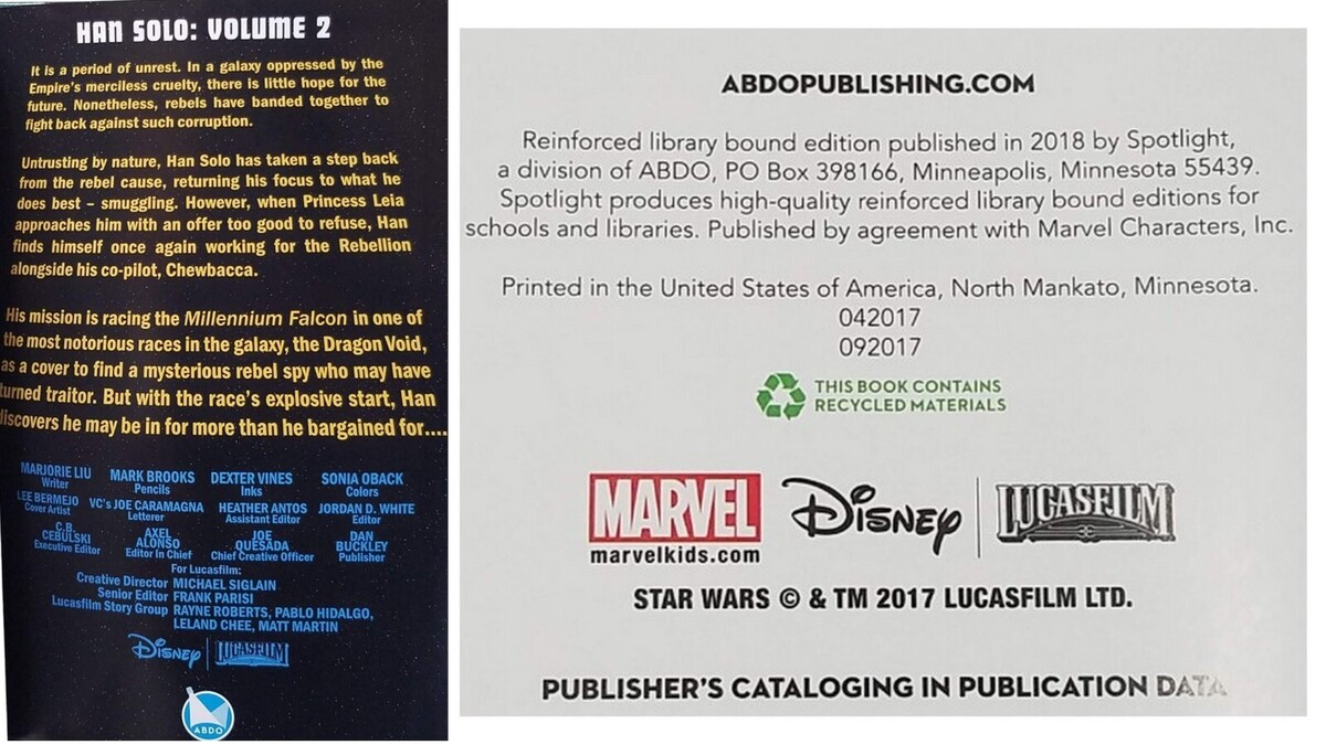 Disney Star Wars Han Solo Volume 2 ABDO Spotlight Hardcover Marvel Comic Book
