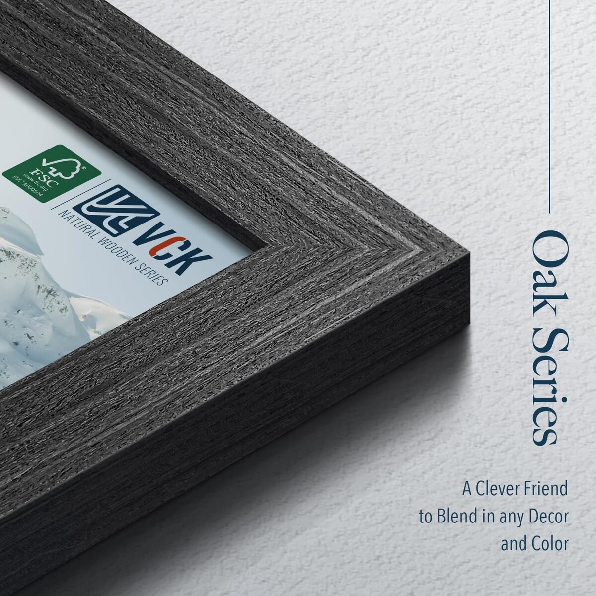 Award-Winning Design: Our black oak picture frame, reimagined in Pennsylvania oak grain by VCK?s expert designers, represents timeless beauty. A testament to classic craftsmanship, it easily blends with any decor, enhancing your space with refined style.,Sustainable Quality: Trust VCK for a fusion of sustainability and unmatched quality. Our robust frames are as enduring as our commitment to nature. Extra-strong corners and back panel protect your cherished memories.,Multipurpose Design: This flexible 13.8"x19.8" frame is designed to display 12x18 or 18x12 photos with ease. Innovative design allows effortless photo insertion and switching between portrait and landscape orientations.,Superior Clarity: Our HD, shatter-proof plexiglass guarantees pristine image clarity, boasting top-notch UV protection and anti-glare feature. A safe choice for families with children.,Satisfaction or Refund: At VCK, your satisfaction is paramount. We strive for excellence in our product experiences and carefully package our frames to arrive in pristine, perfect condition