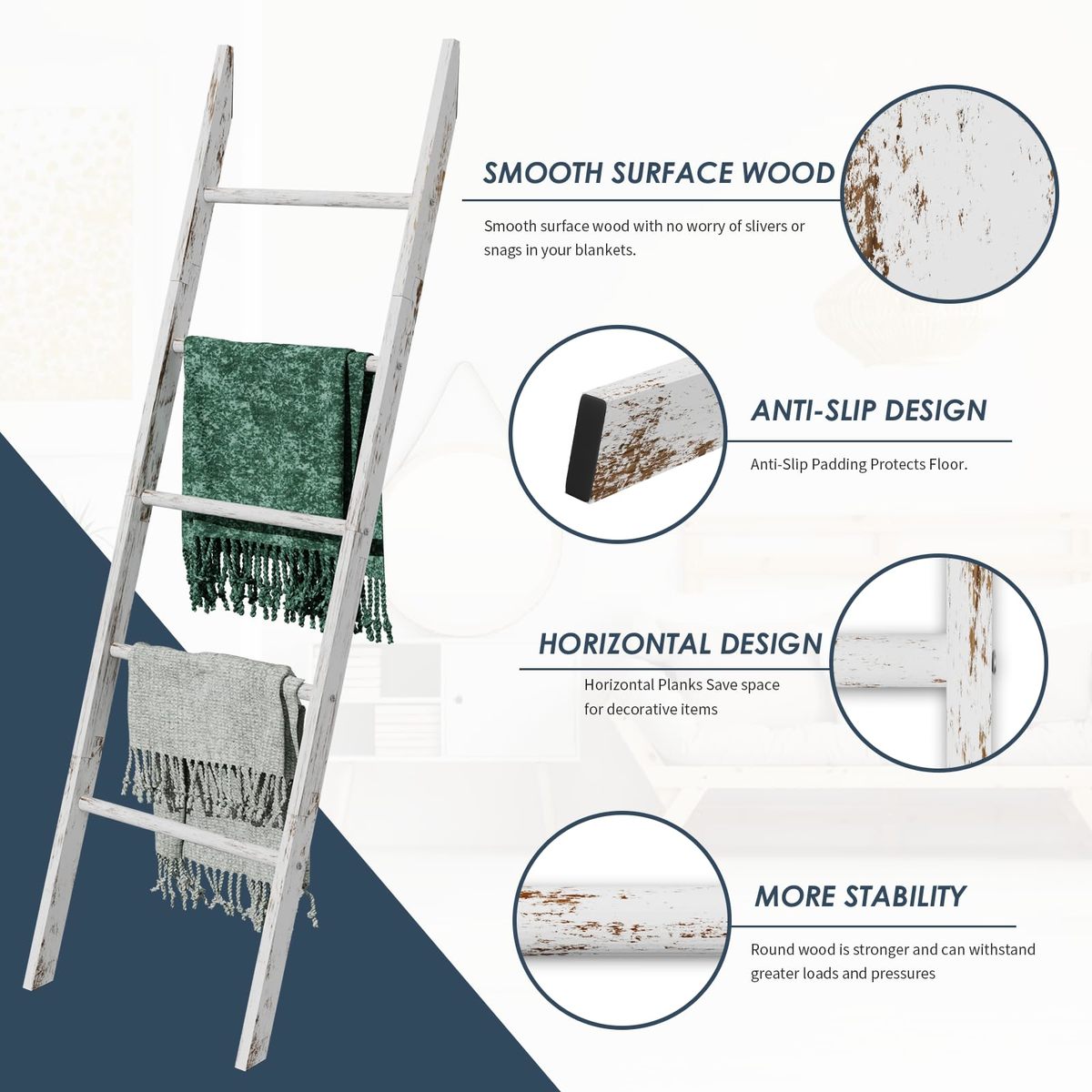 5-Tier Wooden Blanket Ladder 5.3FT (63") Quilt Holder Rack Decorative