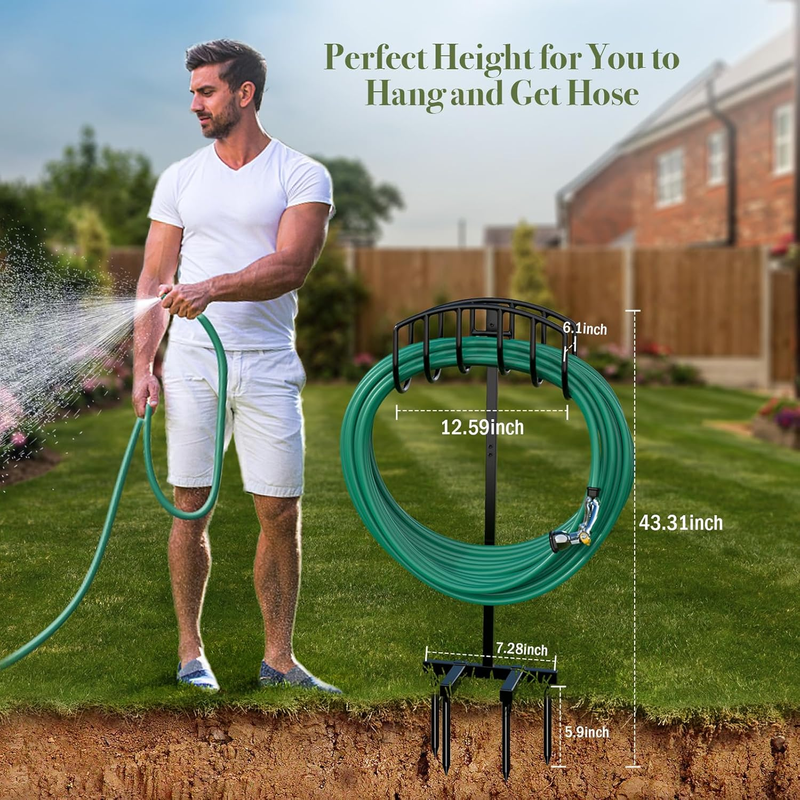 Garden Hose Holder Detachable Heavy Duty Metal Water Hose Hanger, Freestanding