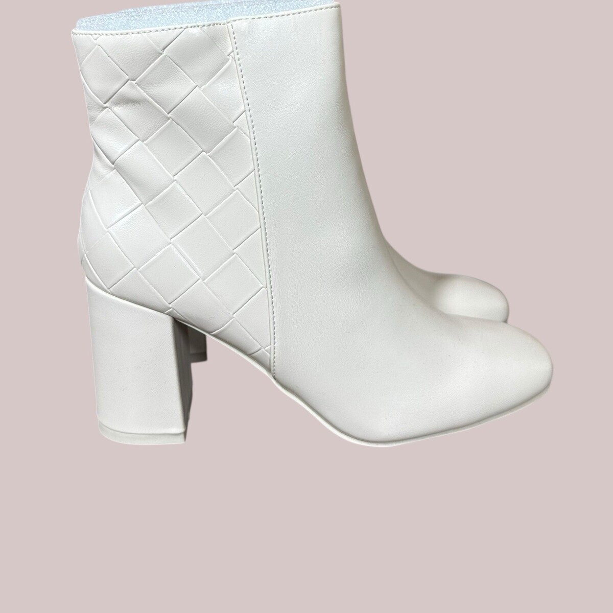 NEW MIA Linne Winter White Ivory Woven Booties Ankle Boots Faux Leather Size 8.5