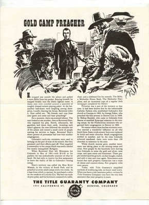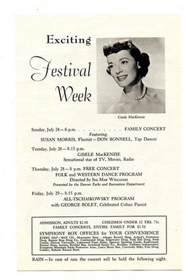 A 4 page Red Rocks Music Festival Program, featuring Dorothy Maynor Soprano Todd Duncan , Baritone. From 1955 at the Red Rocks Theatre in Denver , Colorado. The center pages has an illustrated article on Gold Camp Preacher, sponsored by The Title Guaranty Company . Has Gisele MacKenzie photo and information on the back cover.