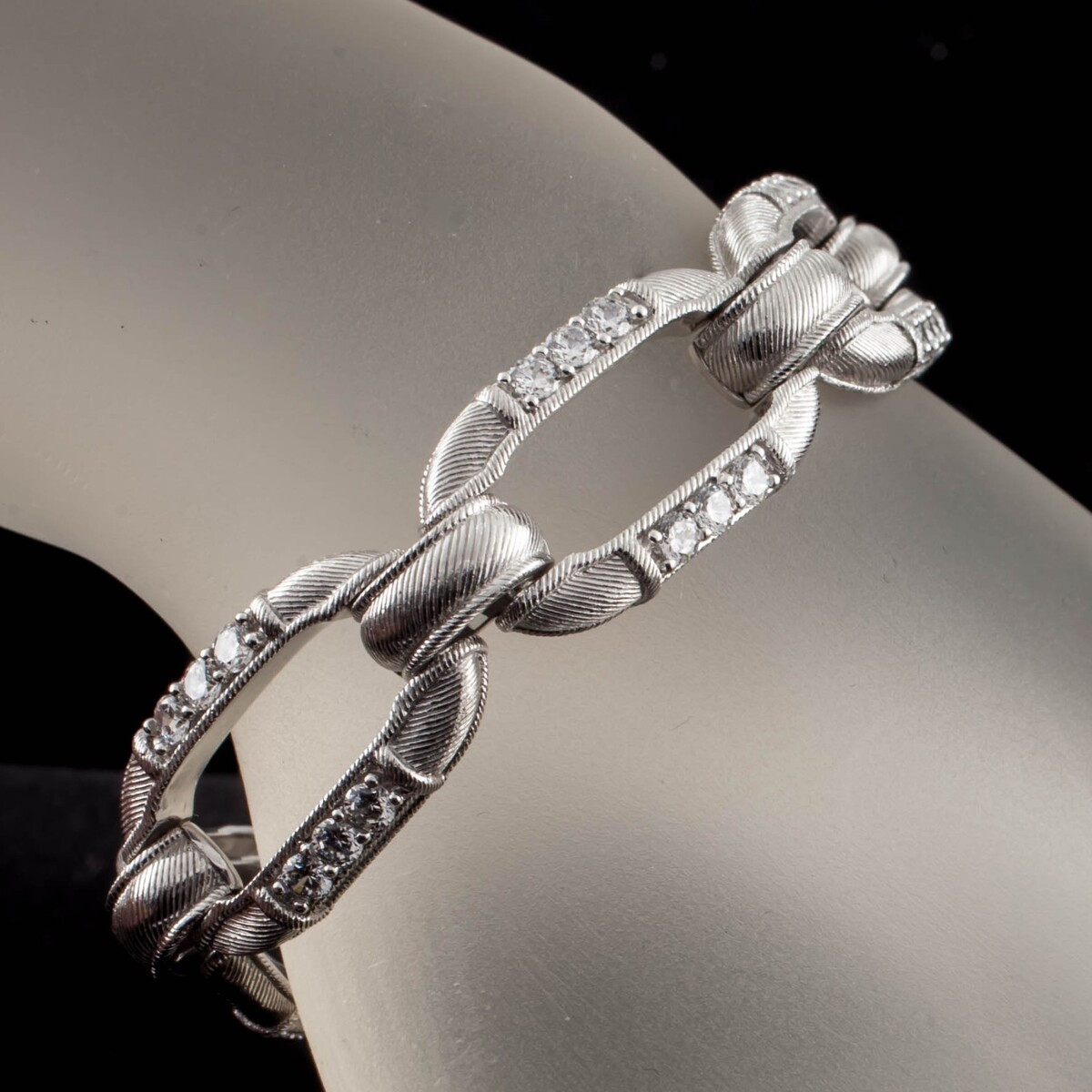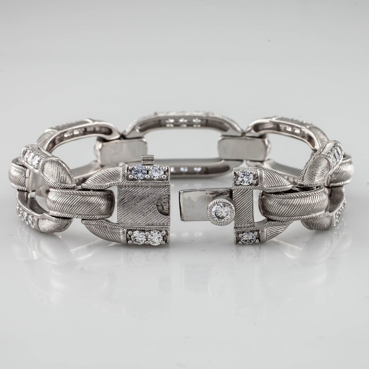 Judith Ripka Sterling Silver CZ Diamonique Cable Link Bracelet 7"