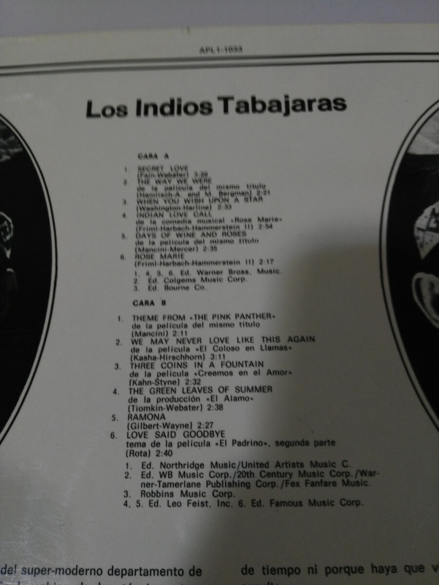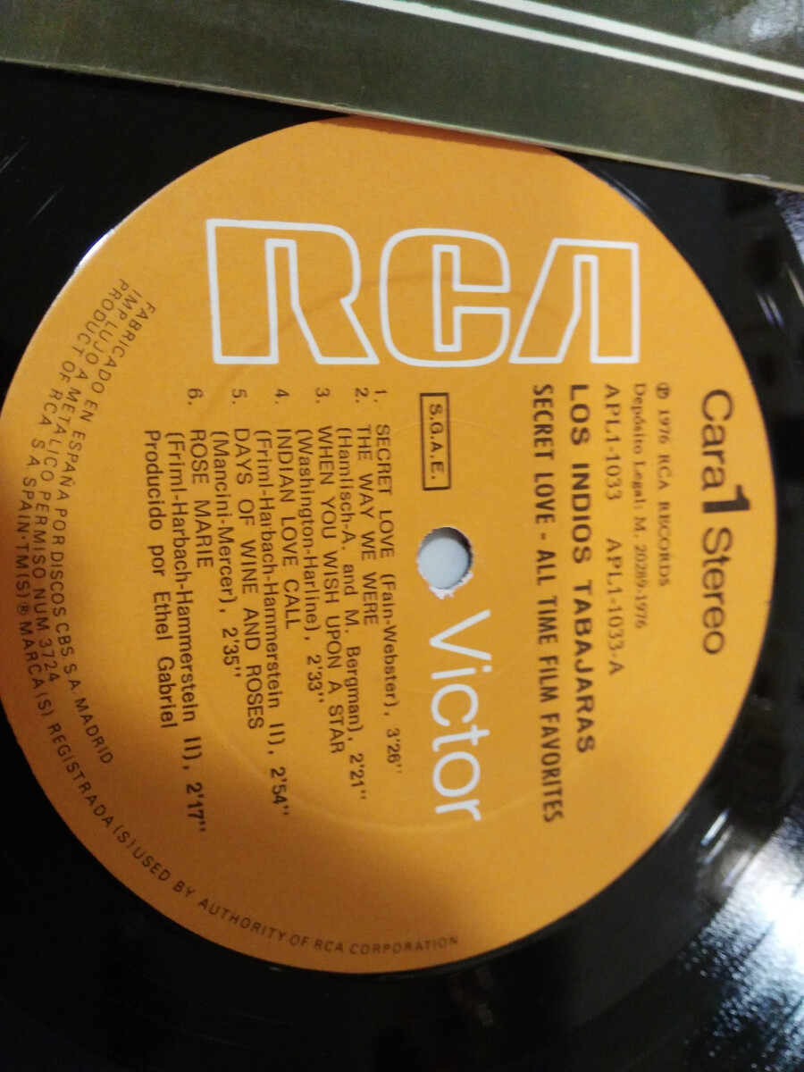 1.- los indios You will work: "Secret Love All Time Film Favorites" - RCA APL1-1033 - 1976 - VG/VG