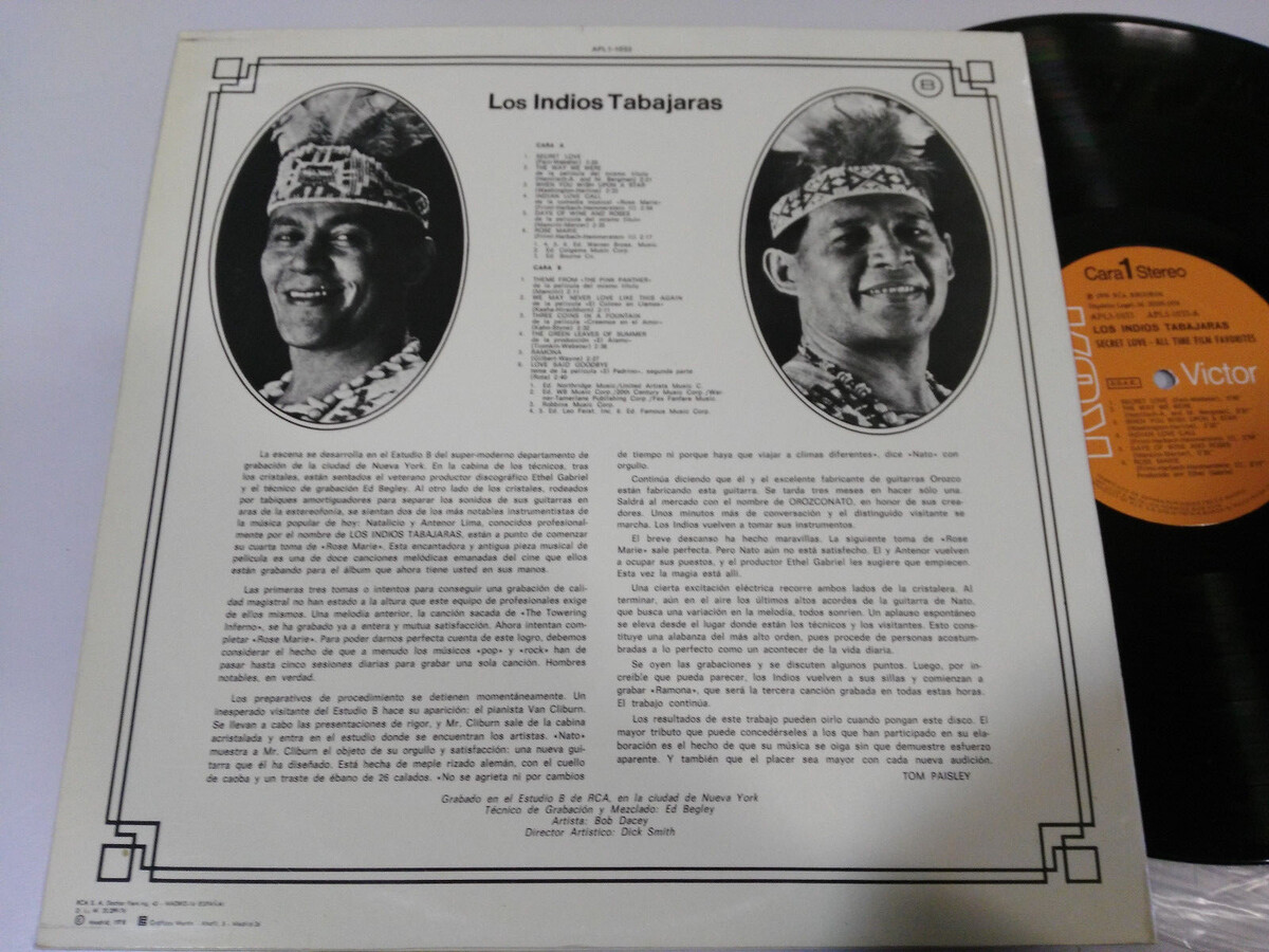 Los Indios Tabajaras Secret Love All Time Film 1976 LP Vinyl 12" VG/VG