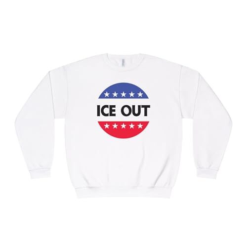 Product description: This crewneck sweatshirt carries a bold, political-satire graphic ? a red, white and blue roundel with stars and the words ?ICE OUT? across the center. It feels like a statement piece you can wear when you want your stance to be noticed without shouting. The medium-heavy NuBlend fleece holds its shape and prints clearly, so the graphic stays crisp wash after wash. Slip it on over a tee for marches, rallies, or neighborhood conversations. The fit is relaxed but structured: ribbed cuffs and hem bring the silhouette together, while the quarter-turned fabric and double-needle stitching mean this sweatshirt will keep looking straight and sturdy through frequent wear. Tear-away label and pre-shrunk fabric keep it comfortable against skin ? breathable, familiar, and ready to be part of your regular rotation when the topic comes up. This is for people who lean into visible commentary ? activists, organizers, politically engaged friends, or anyone who likes apparel that sparks talk. Wear it to canvassing days, civic events, or casual meetups where your views belong on sleeves and shoulders as much as in conversation. Product features - 50/50 NuBlend pre-shrunk fleece (medium-heavy 8.0 oz) for durability and comfort - Quarter-turned fabric to eliminate center crease for a clean look - 1x1 ribbed collar, cuffs and hem with spandex for stretch and a fitted finish - Double-needle stitched edges for long-lasting construction - Tear-away label and regular fit for everyday comfort Care instructions - Machine wash: cold (max 30C or 90F) - Do not bleach - Tumble dry: low heat - Iron, steam or dry: low heat - Do not dryclean