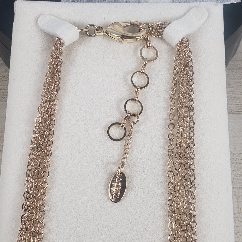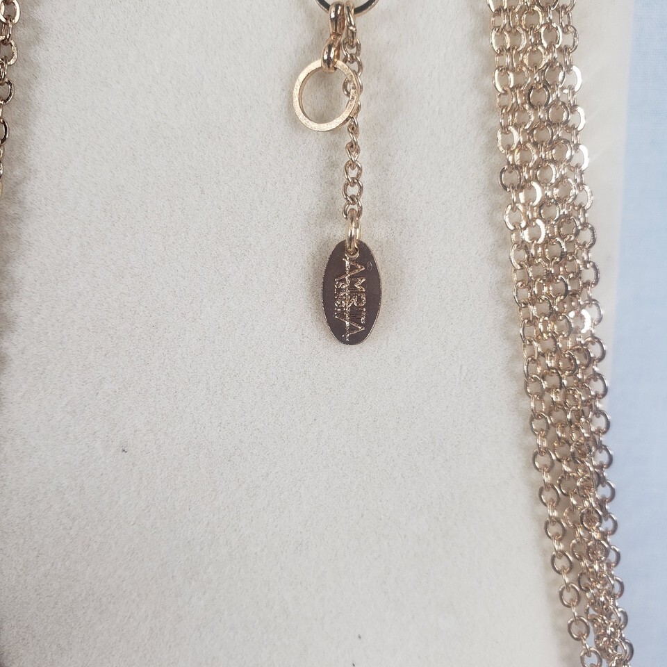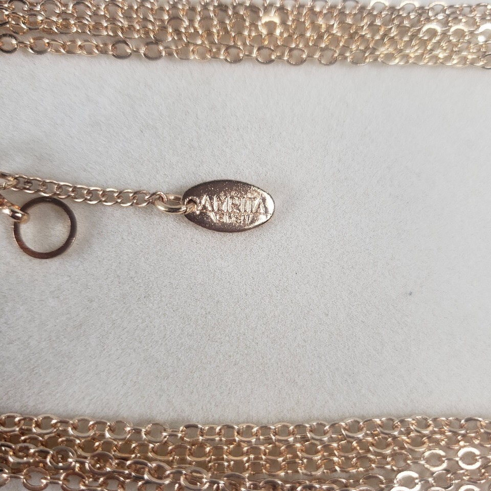 Vintage 2003 Amrita Singh Coral Crystal Enamel Gold Plated Leaf Multi Chain Necklace Adjustable Lobster Closure