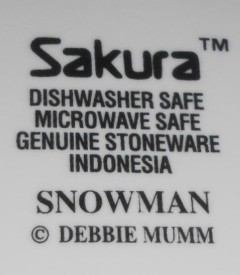 This is a set of (4) 11" Stoneware Dinner Plates from Sakura in the Holiday - Christmas Snowman Pattern and designed by Debbie Mumm. They are all in good pre-owned condition with no chips or damage.