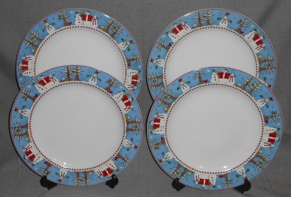 Set (4) Sakura SNOWMAN PATTERN Dinner Plates HOLIDAY - CHRISTMAS