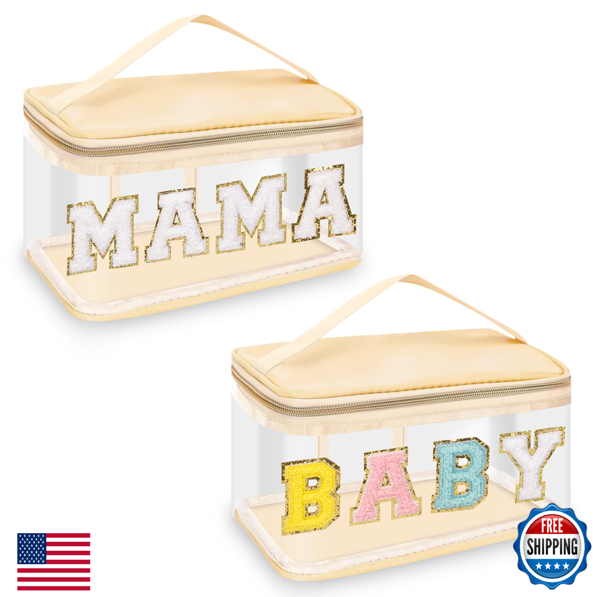 2 Pcs Chenille Letter Clear Makeup Bags Mama Baby Pouch Preppy Patch Cosmetic Ba