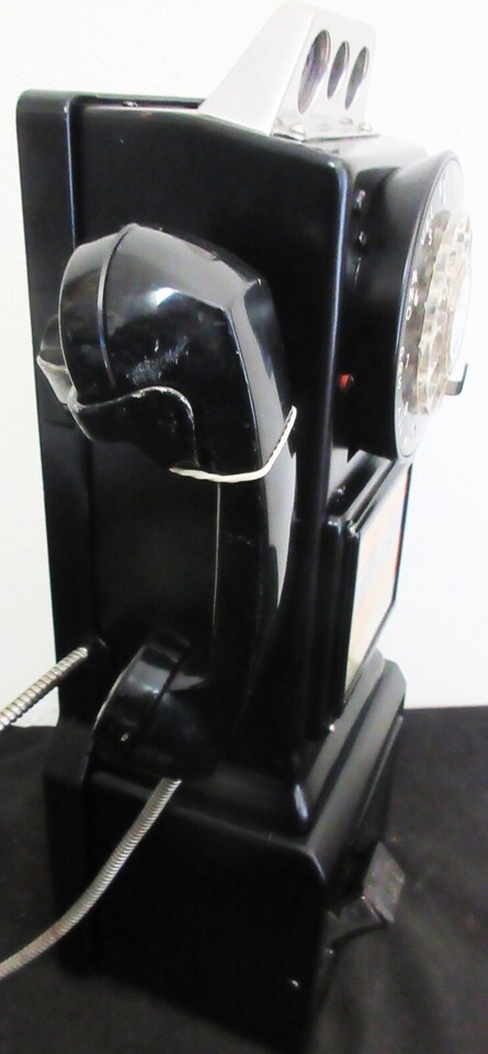 Perfect for collectors or as a prop for retro-themed events, this non-operational pay telephone serves as a distinctive conversation starter. It embodies the transitional design from the1940s to the 1960s, making it an intriguing addition to any collection of antique telecommunications equipment.