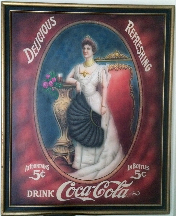An original painting by American artist Michael Scott created in 1985 of a 1896 Coca-Cola advertisement. The framed painting "Delicious-Refreshment-Bottles 5c" measures 35" tall by 29" wide. The original circa 1896 Coca-Cola advertisement valued over $25,000. Only one original painting available.
