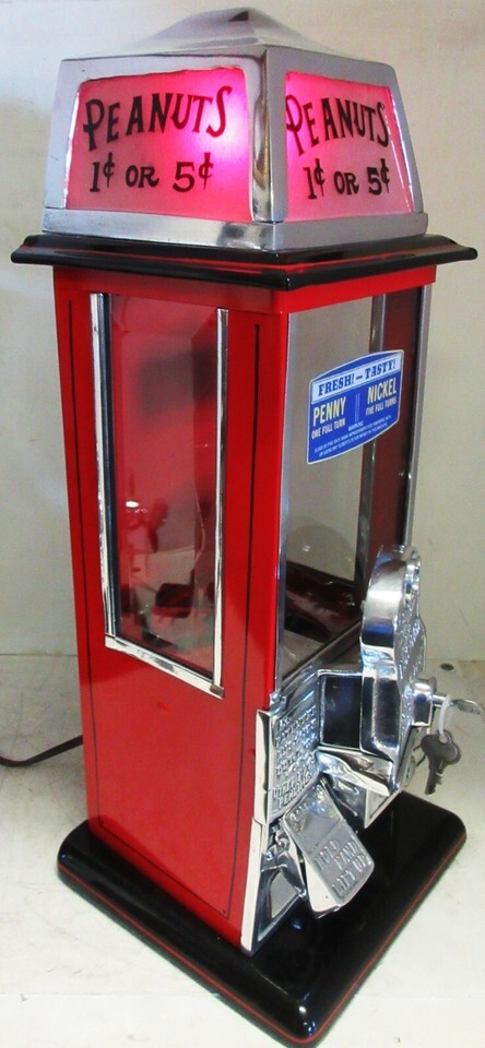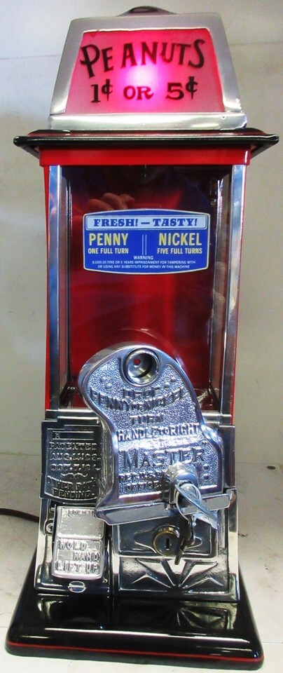 Masters Penny/Nickel Peanut Dispenser Lighted Top circa 1930 Red/Black