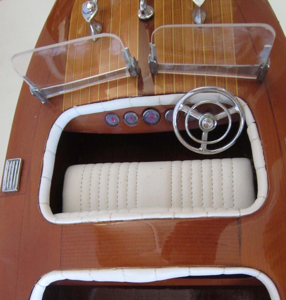 The throaty growl of that big engine built inside gleaming mahogany, rich leather, chrome trim. Leather padded seats displayed movie stars trying out the new bikini fashions. Thunderboats (also called Hydroplanes) racing with each other at record speed. Stateside, the luxurious Chris Crafts were de rigeur with Hollywood elite.