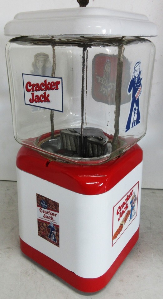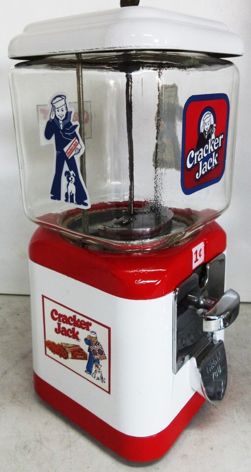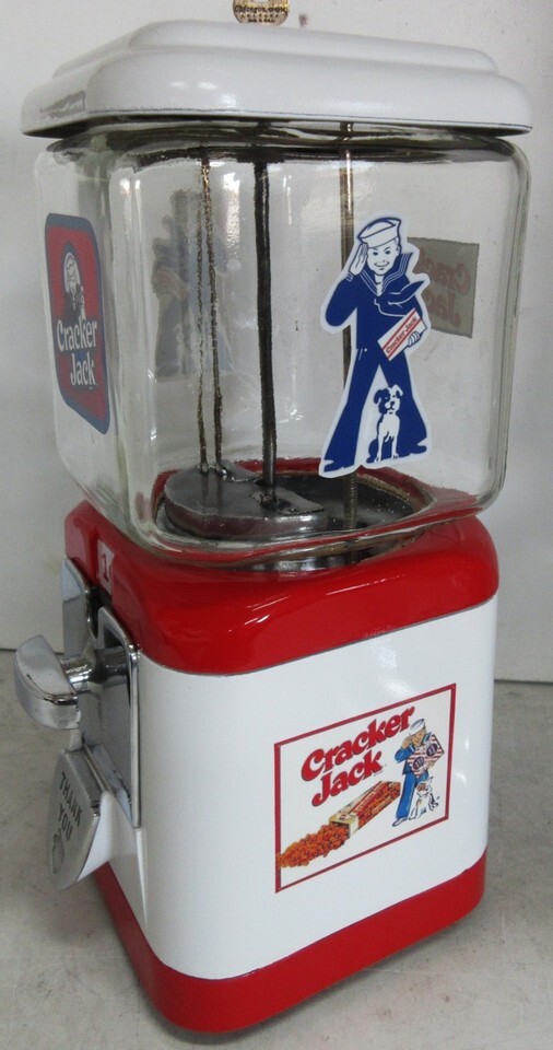 A penny operated Acorn round gumball dispenser restored Cracker Jack theme, circa 1950's.
