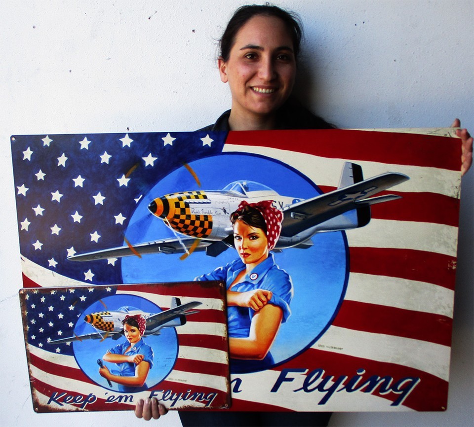 Keep Em Flying Metal Sign measures 36 inches by 24 inches and weighs in at 10 lb(s). This Metal Sign is hand made in the USA using heavy gauge American steel.