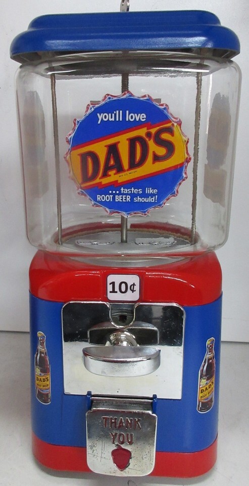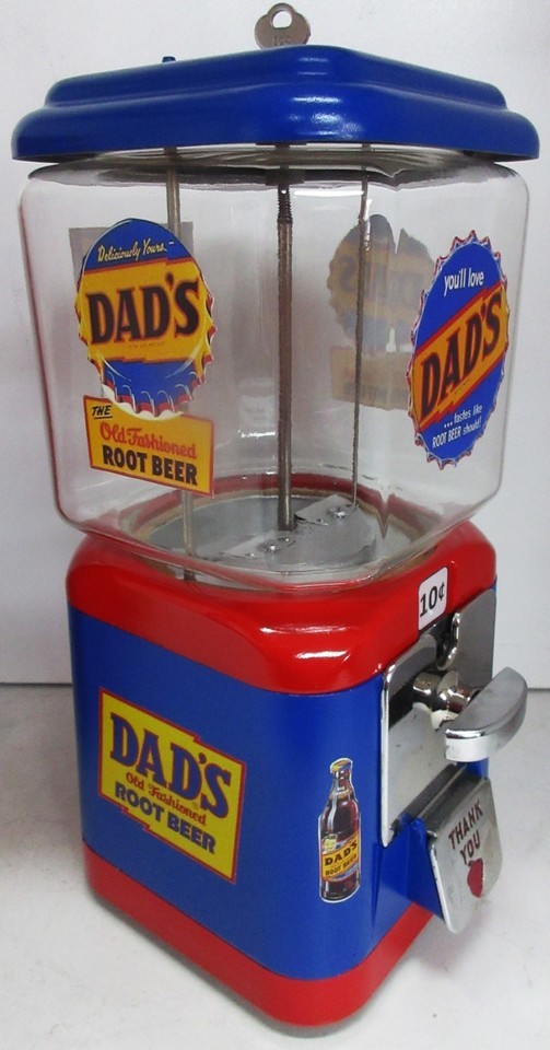 Dad's Dime Round Gumball Dispenser Dad's Root Beer Theme Circa 1950's
