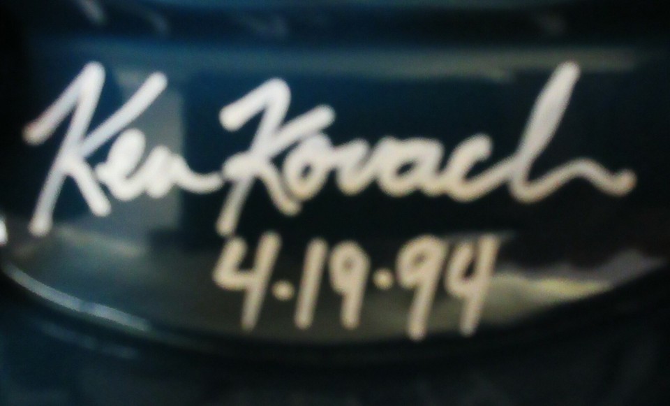 The blue pedal car is hand signed by Ken Kovack #8 of only 33, dated 04/19/94