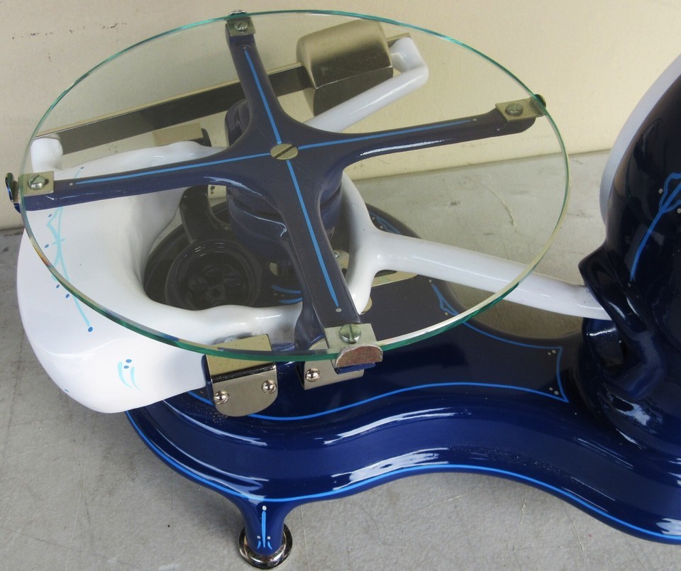 Restored in a automotive navy blue and white custom finish detailed in light blue pin stripping. Very rare scale