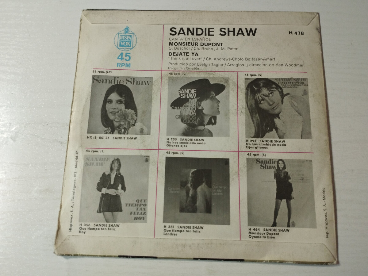 Sandie Shaw Chante en Espagnol Monsieur Dupont 1969 H-478 - Single vinile 7 "
