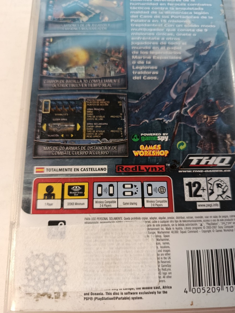 el juego offers deep strategic experience con 15 para un missions and 9 multiplayer missions. Each confrontation takes place in Fully destructible 3D de, where el and cover can ser the keyde the victory. Spanish edition complete con original box, manual and UMD. juego In excellent de and fully functional. Ideal para fans de Warhammer 40,000, de collectors and lovers de tactical strategy. Warhammer 40K, Warhammer 40000, Squad Command, PSP, PlayStation Portable, THQ, Games Workshop, RedLynx, tactical juego , turn-based strategy, space marines, Adeptus Astartes, Legions del Chaos, video gamedeguerra , PSP collection, PAL Spain, 2007 We Are Based in Spain and Offer Carefully Curated Items: Vinyl Records, VHS Tapes, DVDs, Cassettes, Books and Collectibles. We Take Great Care with item Condition