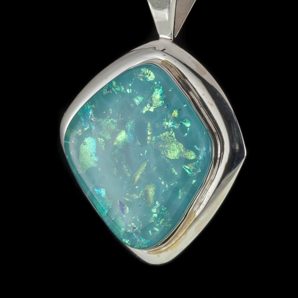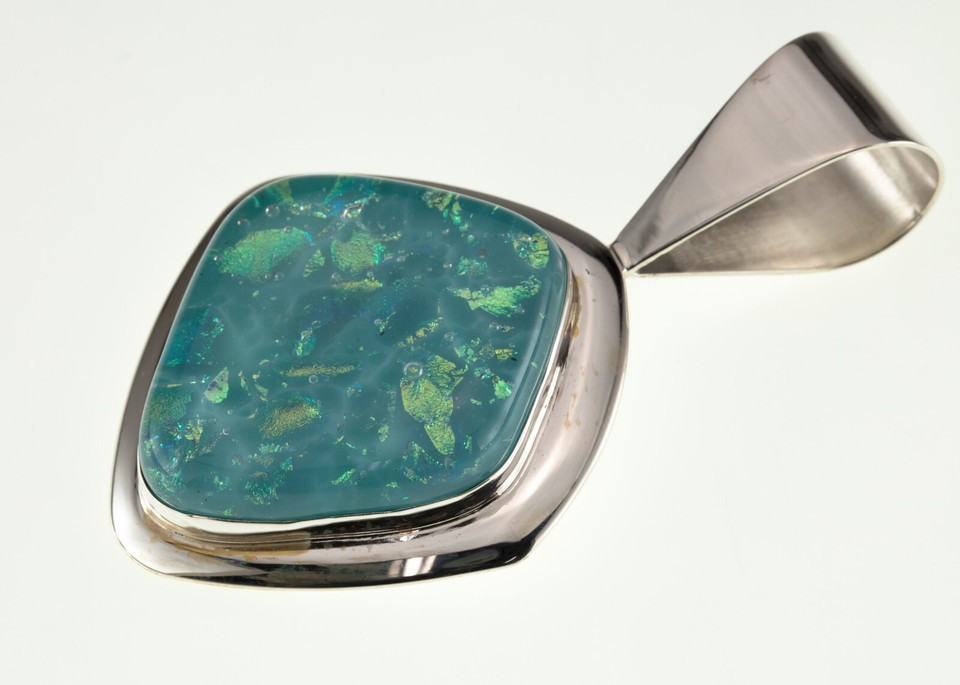 Jay King DTR Sterling Silver Turquoise Art Glass Pendant 32.5g