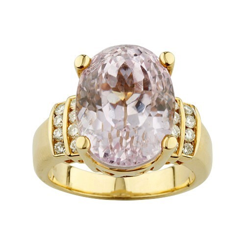 Authenticity Guarantee Kunzite Solitaire with Diamond Accents 18k Yellow Gol...