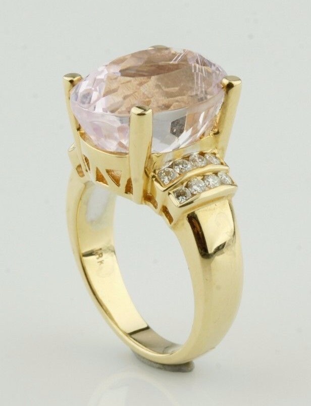 Amazing 18K Yellow Gold 12.94 ct Kunzite Solitaire Ring w/ Diamond Accents Size 6.75