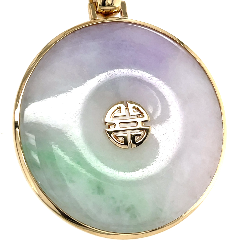 14K Solid Yellow Gold Multicolor Jade Disc Pendant Longevity ?Shou? Symbol