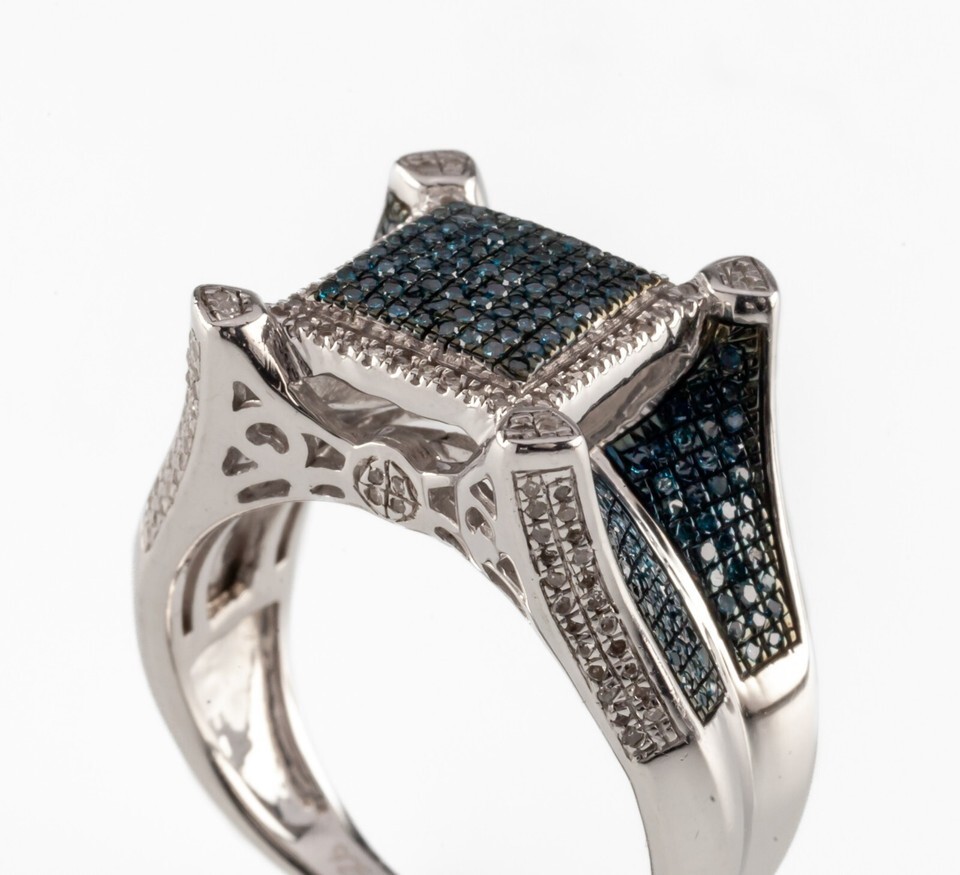 JTV Sterling Silver Blue Velvet Micropave Diamond Ring .50 CTW Size 8.5