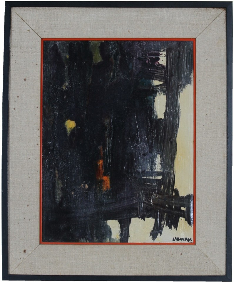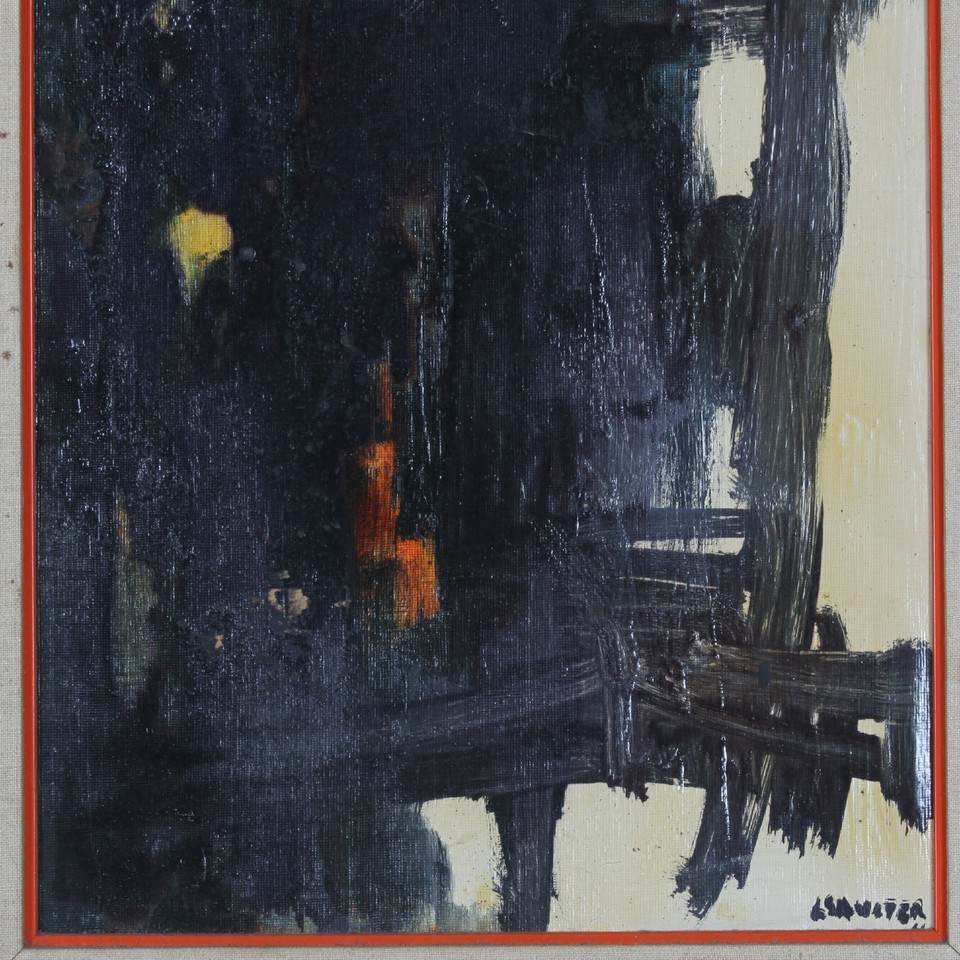 Leon Saulter Original Oil Painting on Board Black Abstract Expressionist Art