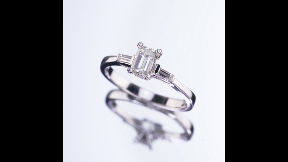 One prong set emerald shaped cut diamond