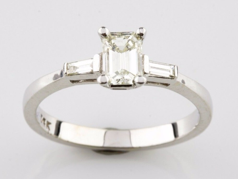 14K White Gold Emerald Cut Diamond Unity Ring w/ Accent Stones TDW = .7 ct Size 6.75