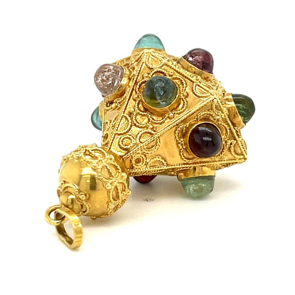 18K Yellow Gold Multicolor Tourmaline ?Sputnik? Charm Pendant 16.7 Grams