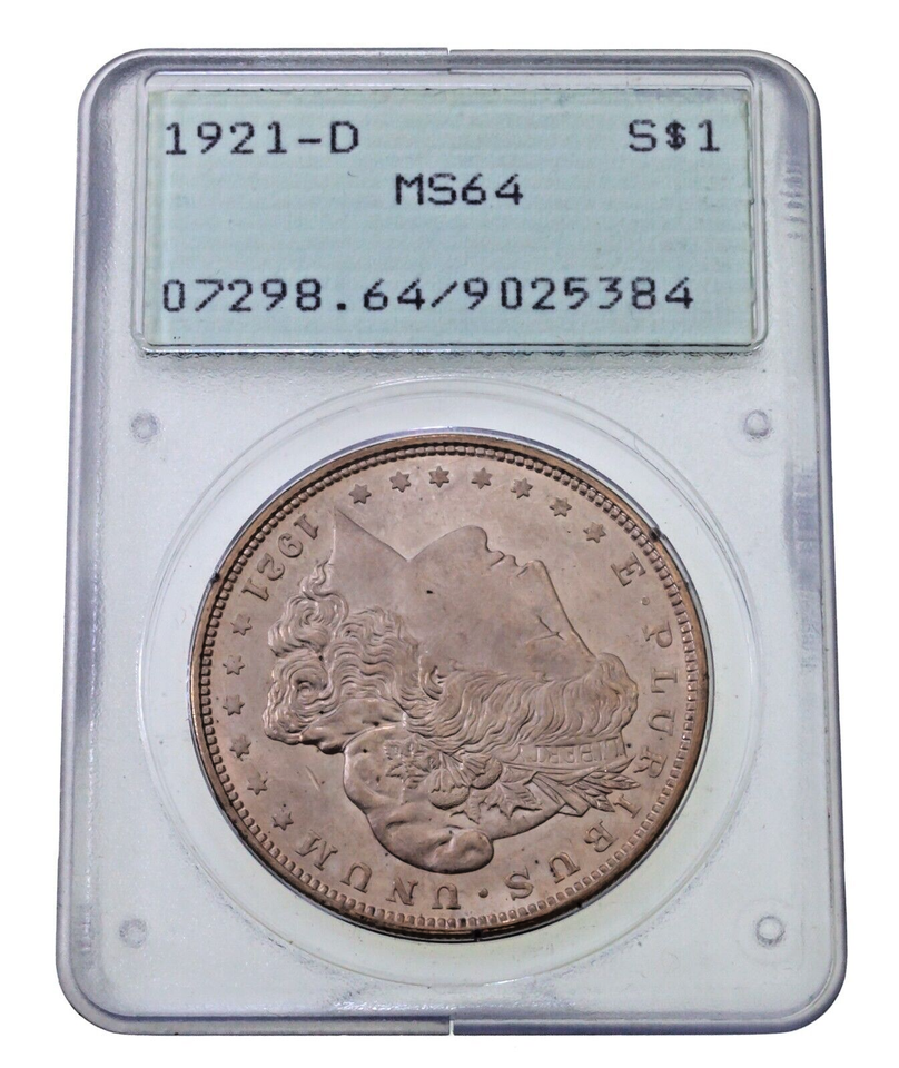 1921-D $1 Silver Morgan Dollar Graded by PCGS as MS-64 Old Holder