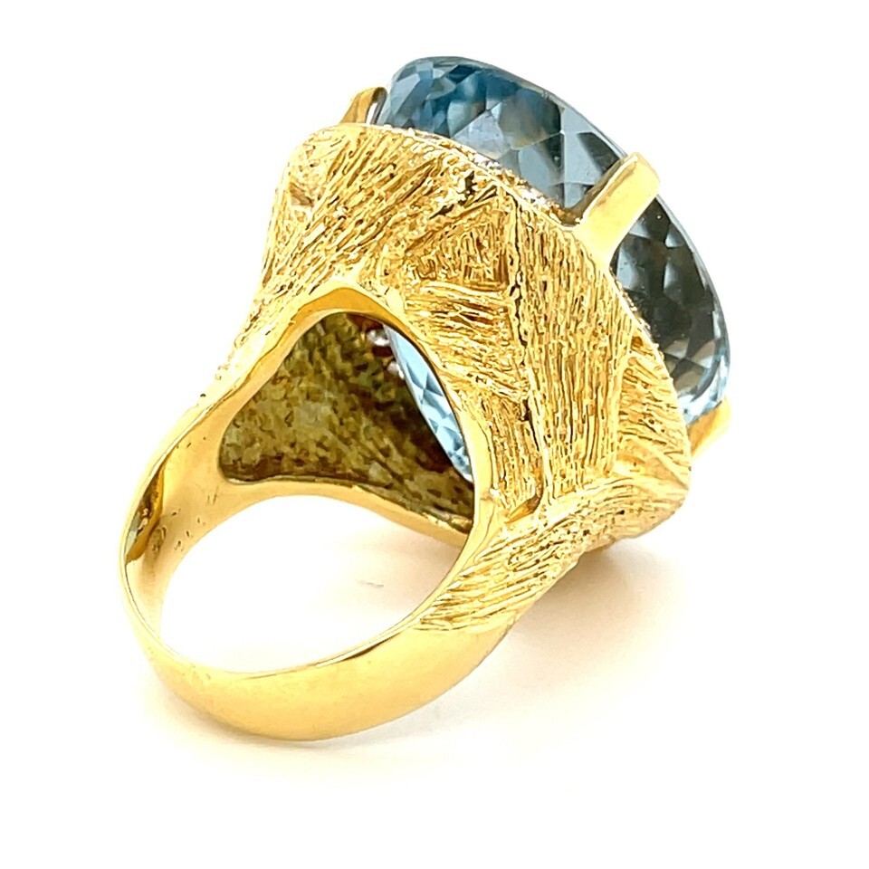 Authenticity Guarantee 18k Yellow Gold Oval 72.19 ct Aquamarine Ring with Ap...
