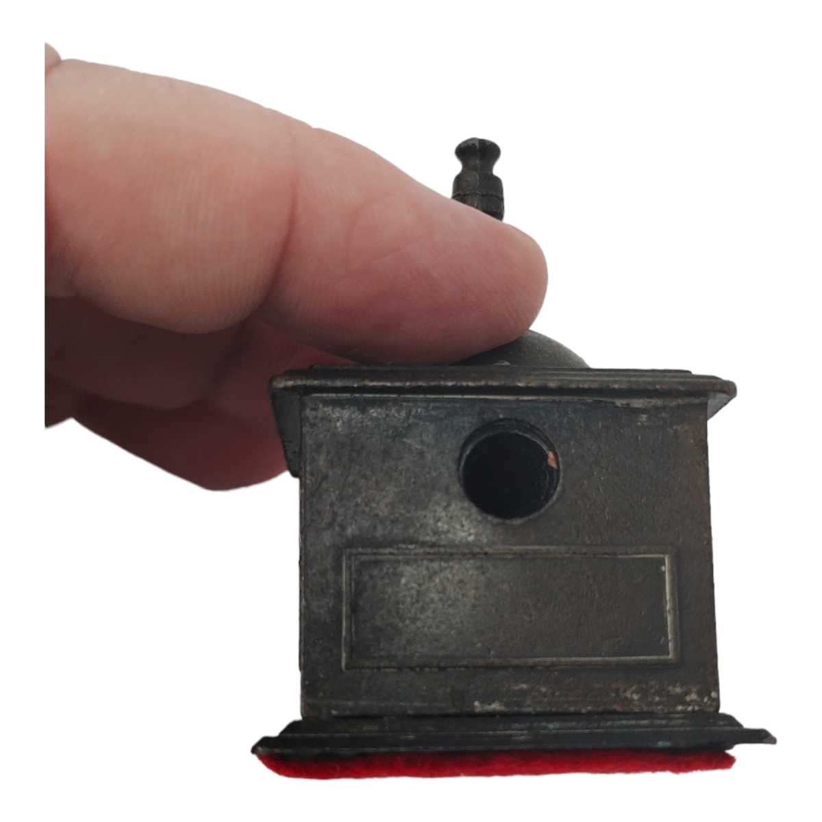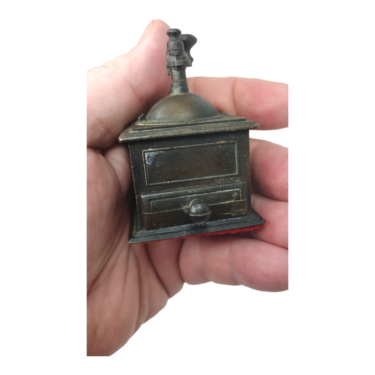 Vintage Metal Miniature Coffee Grinder Pencil Sharpener with Drawer. Pre-owned in pretty good condition. Some wear from age. Felt on bottom is coming off, can be reglued. Pencil sharpener works fine. There is a good amount of wear. See all photos for details and condition. Will ship USPS First Class Mail.