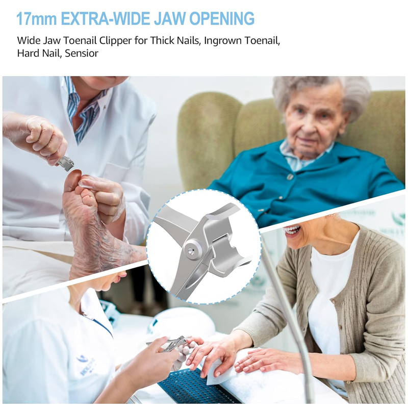 Wide Toenail Clippers for Thick Nails: Maximum 17mm wide jaw opening, extra large toenail clippers for thick or ingrown toenails due to tough?paronychia?aging and other health concerns.