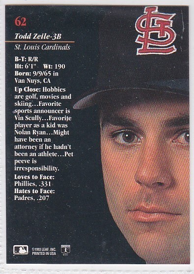 M) 1993 Leaf Studio MLB Baseball Trading Card - Todd Zeile #62