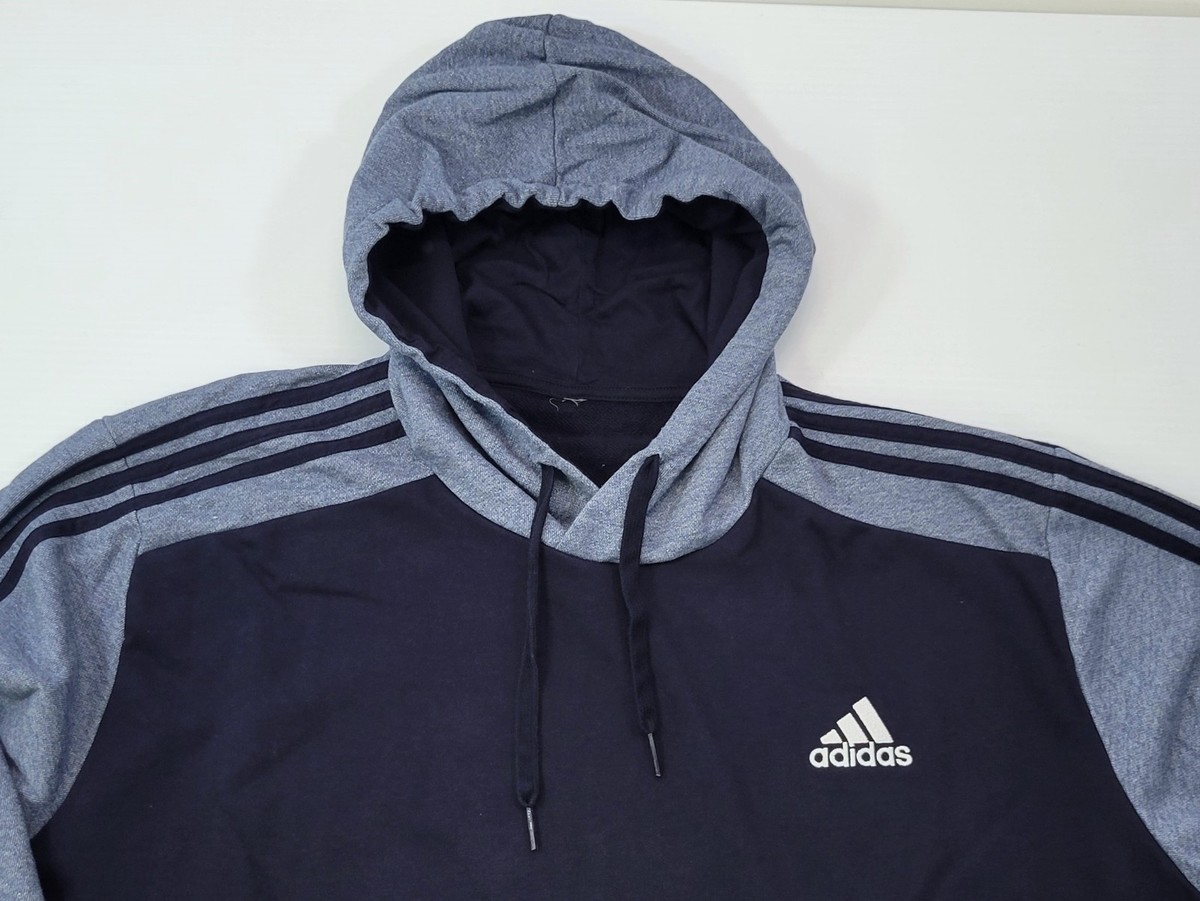 A) Adidas Essentials Men Pullover Blue Terry Hoodie Sweatshirt 2XL
