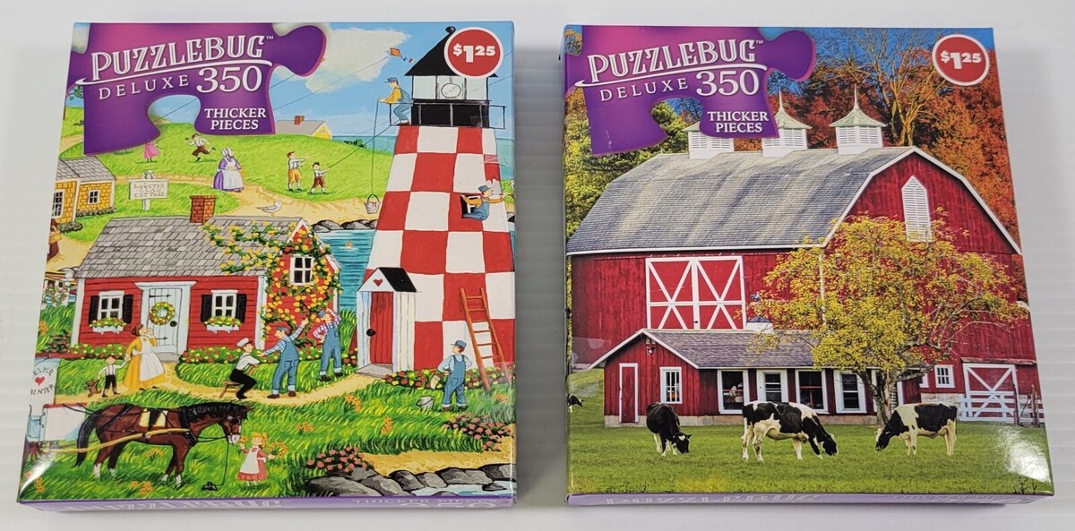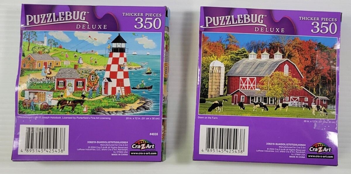 *I) Lot 2 Puzzlebug Deluxe Jigsaw Puzzles 350 Down on Farm Checkerboard Light