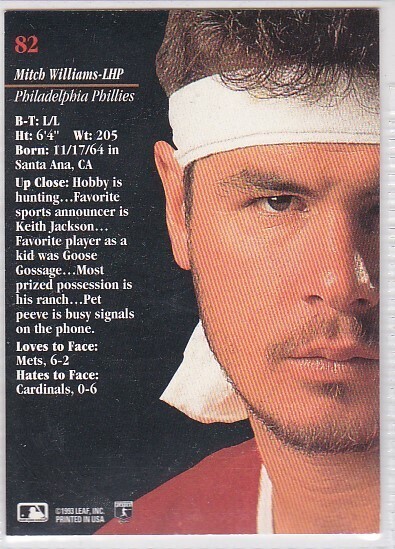 M) 1993 Leaf Studio MLB Baseball Trading Card - Mitch Williams #82