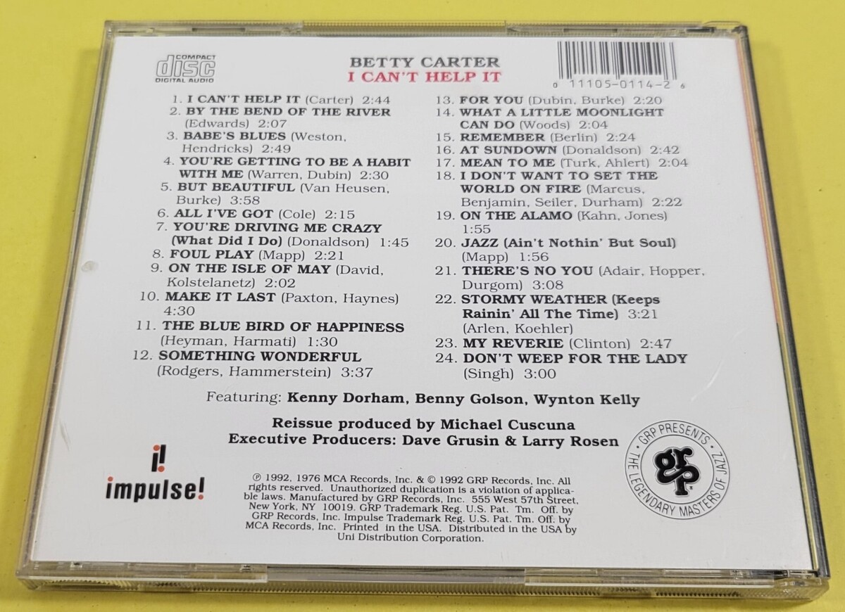 I Can't Help It by Betty Carter (CD, Jul-1992, GRP)