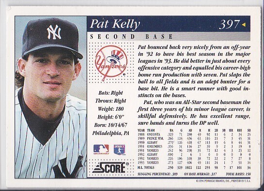 M) 1994 Score Baseball Trading Card - Pat Kelly #397