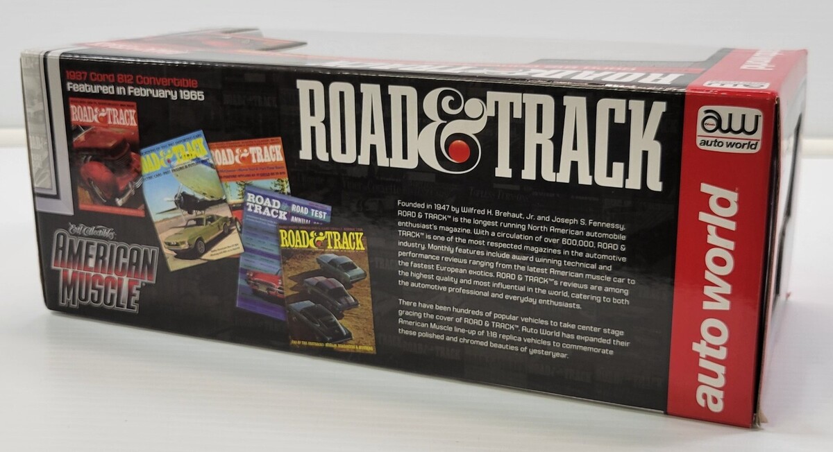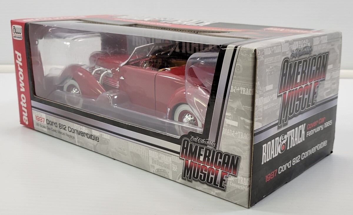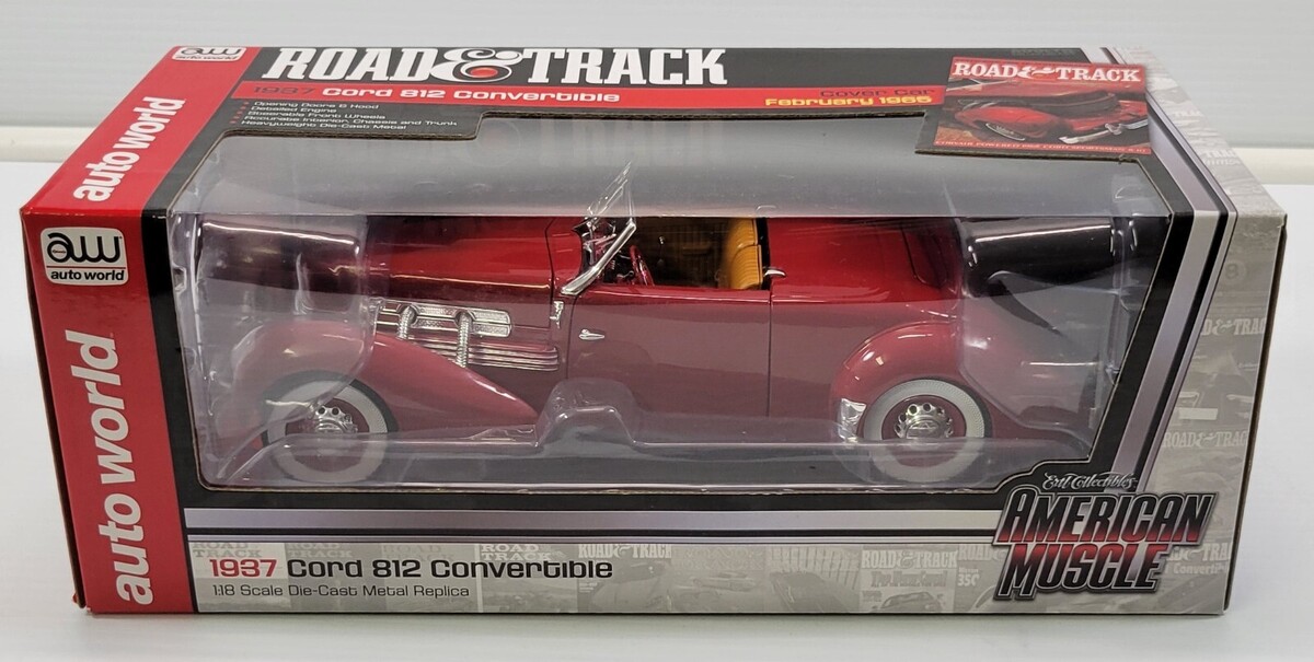 *B4) Auto World 1937 Cord 812 Convertible Road & Track Diecast Model Car 1:18