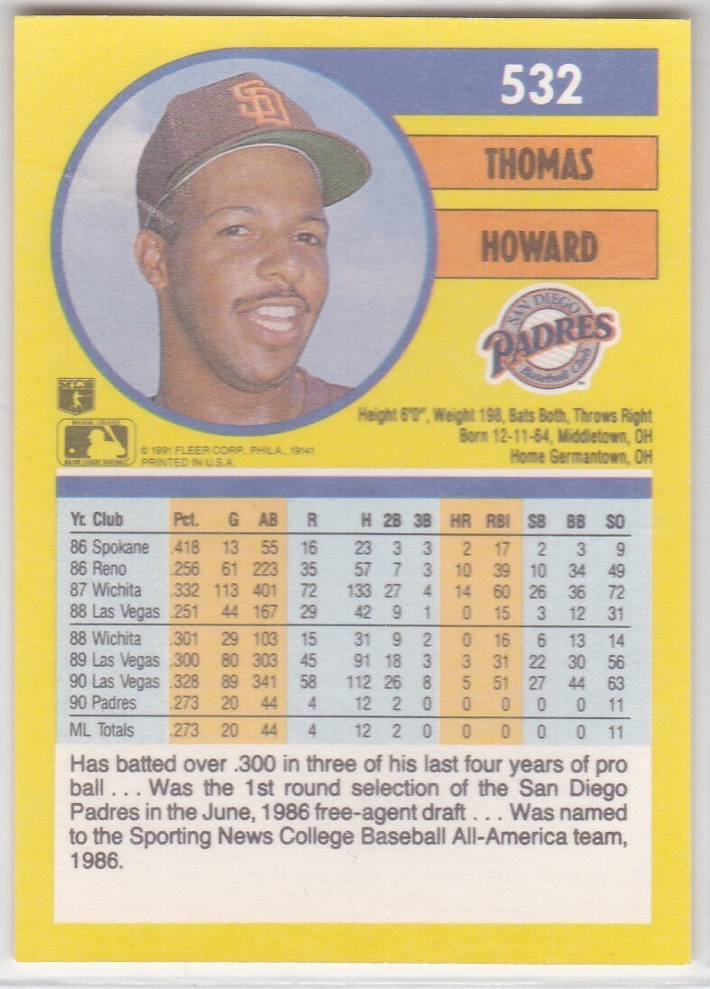 M) 1991 Fleer Baseball Trading Card - Thomas Howard #532