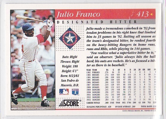 M) 1994 Score Baseball Trading Card - Julio Franco #413