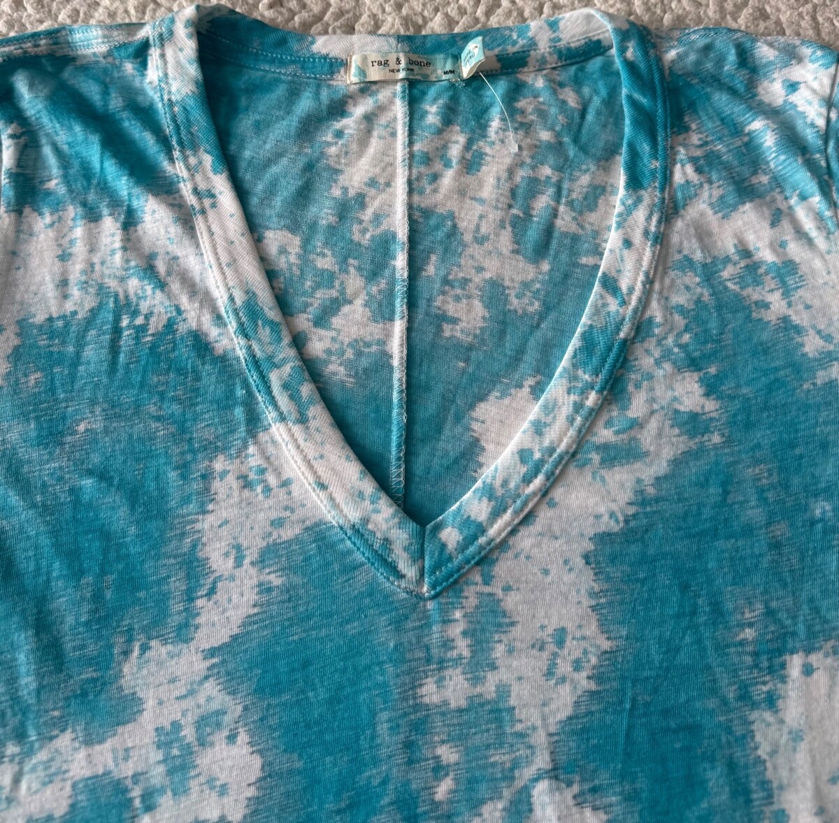 RAG & BONE Basic Jersey T-Shirt Turquoise V Neck 100% Organic Pima Cotton Size M