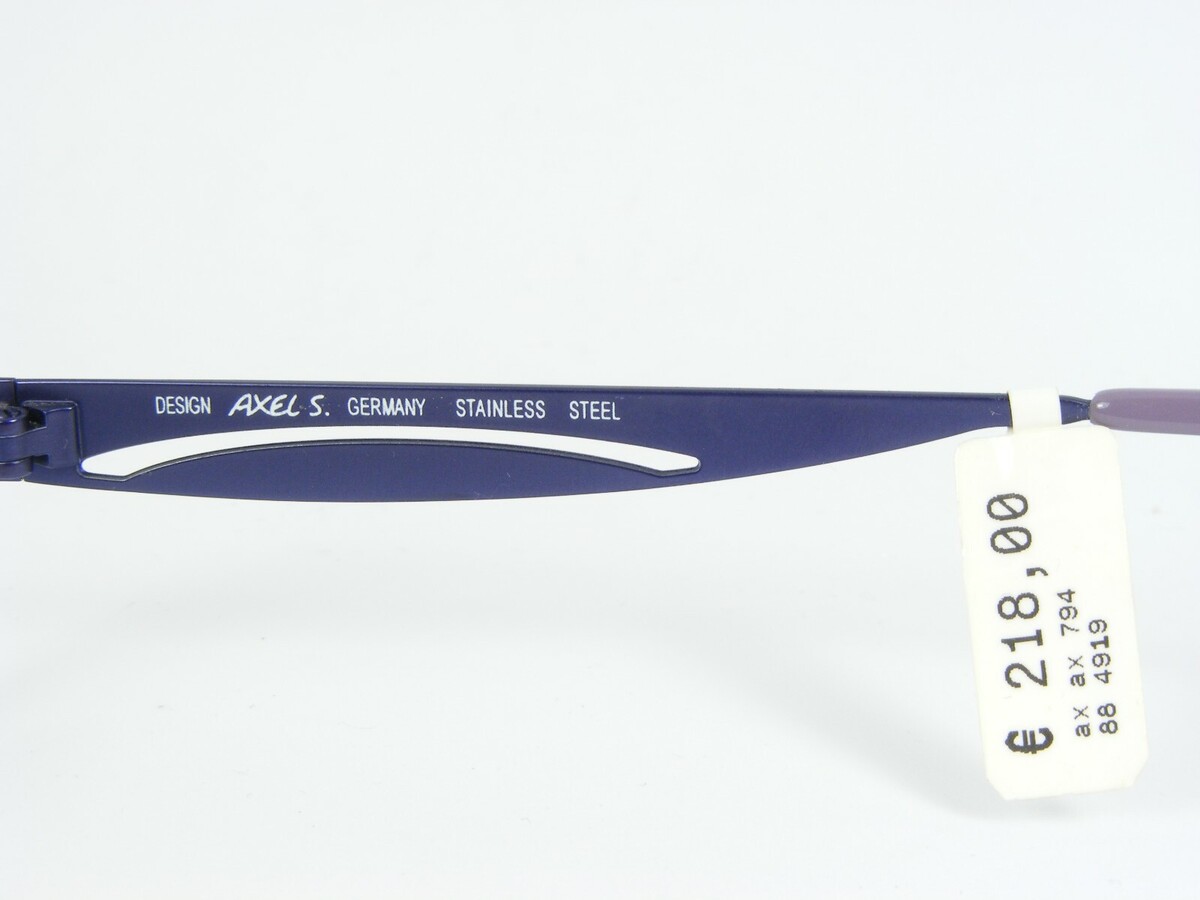 AXEL S. AX 794 88 LUNETTES LILAS / VIOLET MONTURE DE LUNETTES 49-19-136mm. (A102) Axel S. fait partie des pionniers de la lunetterie et est l'un des designers les plus celebres d'Allemagne depuis plus de 30 ans. Sa collection s'adresse principalement aux clients orientes vers la mode, destines aux dames et messieurs soucieux de la mode. Ses creations sont la preuve vivante que les lunettes ne doivent pas necessairement etre une prescription medicale, mais une maniere individuelle et progressive d'exprimer sa personnalite. Les caracteristiques de conception et de qualite sont leur acceptabilite internationale. Les retours sont toujours GRATUITS pour quelque raison que ce soit. Si vous ne l'aimez pas, cliquez simplement sur "Article dont vous n'avez plus besoin". L'article doit etre retou