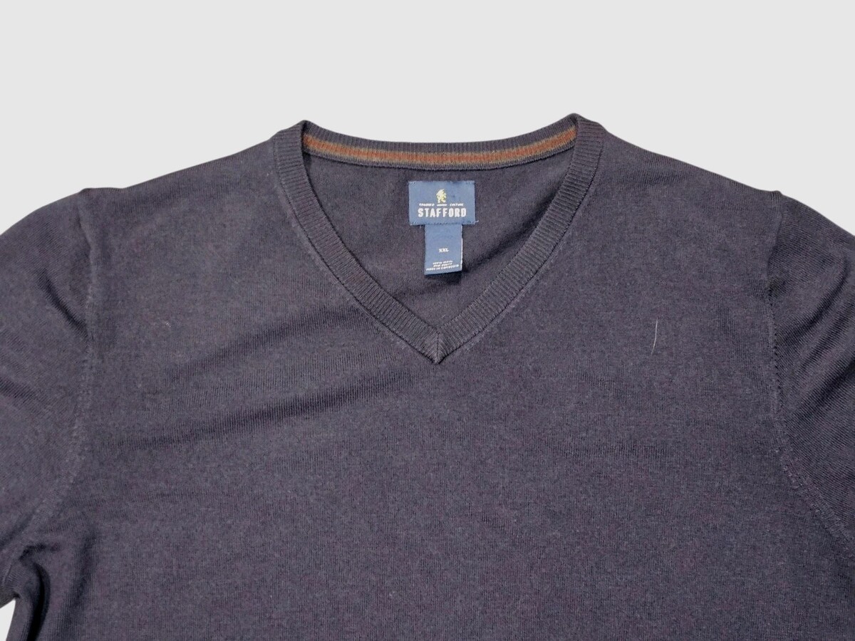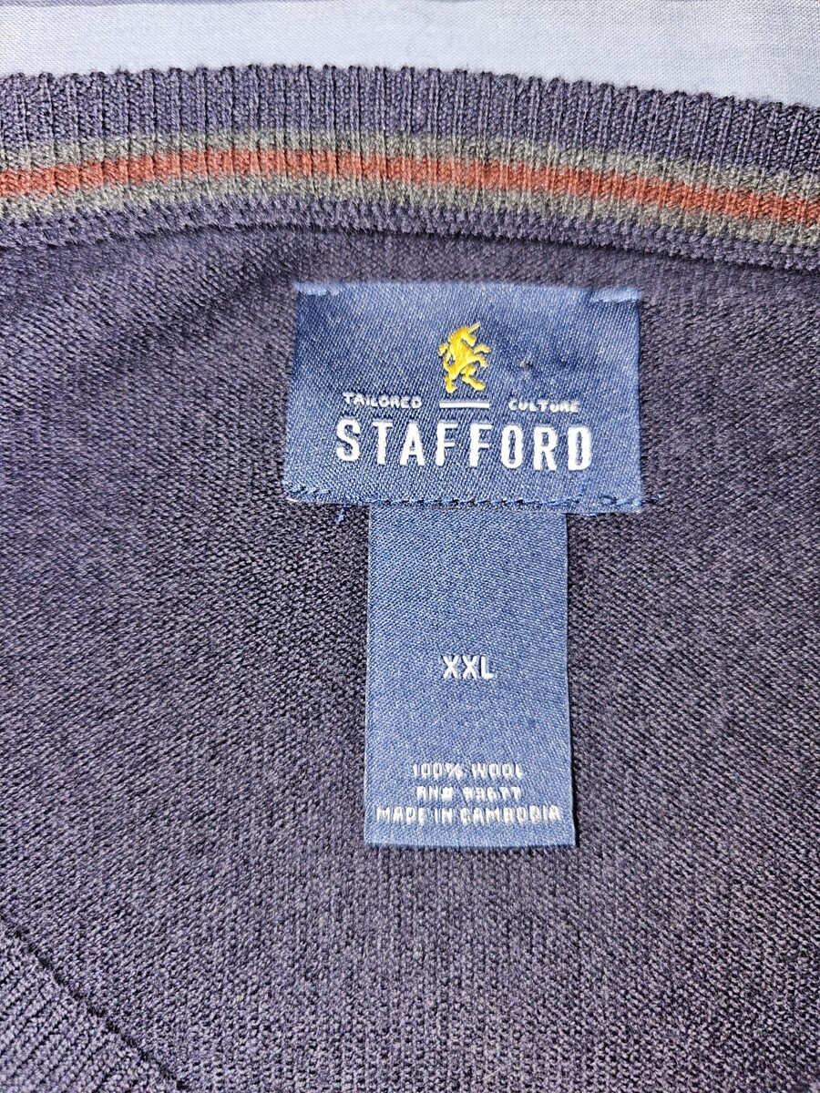 VTG Stafford 100% Wool Knit Sweater Mens XXL Blue V-Neck Pullover Long Sleeve